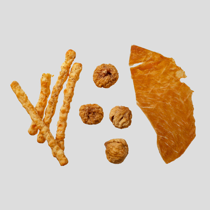 | 原材料名 | 〇いちじく:いちじく(イラン産) 〇ポークジャーキー:豚もも(国産)、醤油、還元水飴、砂糖、酵母エキス、食塩/調味料(アミノ酸等)、酸化防止剤(VC、VE)、着色料(紅麹)、香辛料抽出物、発色剤酸Na)、(一部に小麦・豚肉・大豆を含む) 〇チーズ:乳等を主要原料とする食品(ナチュラルチーズ、植物油脂、マルトデキストリン、食塩)(国内製造)、ブラックペッパー、食塩/安定剤(加工でん粉)、乳化剤、調味料(アミノ酸)、(一部に乳成分を含む) |