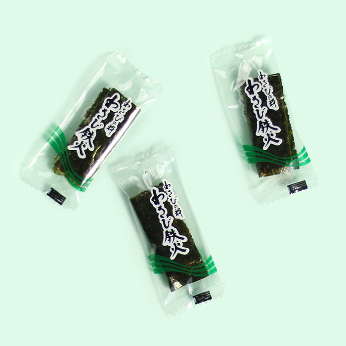 | 原材料名 | 餅米(国内産)醤油(大豆・小麦を含む)、海苔、砂糖、澱粉、いわしエキス、香辛料、わさび/香辛料抽出物調味料(アミノ酸等) |